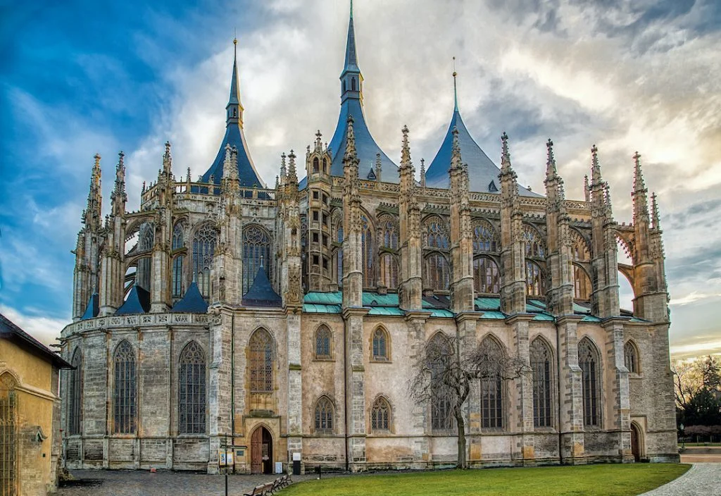 Po przybyciu do Kutnej Hory będziesz oczarowany niezwykłym Kościołem Świętej Barbary. To późnogotyckie arcydzieło zawsze było symbolem miasta i źródłem dumy jego górników. Gdy wejdziesz do środka, zostaniesz powitany przez hipnotyzujący pokaz architektonicznego blasku. Skomplikowany projekt kościoła, ozdobiony oszałamiającymi sklepieniami i wspaniałymi witrażami, przeniesie Cię do minionej epoki artystycznej świetności.