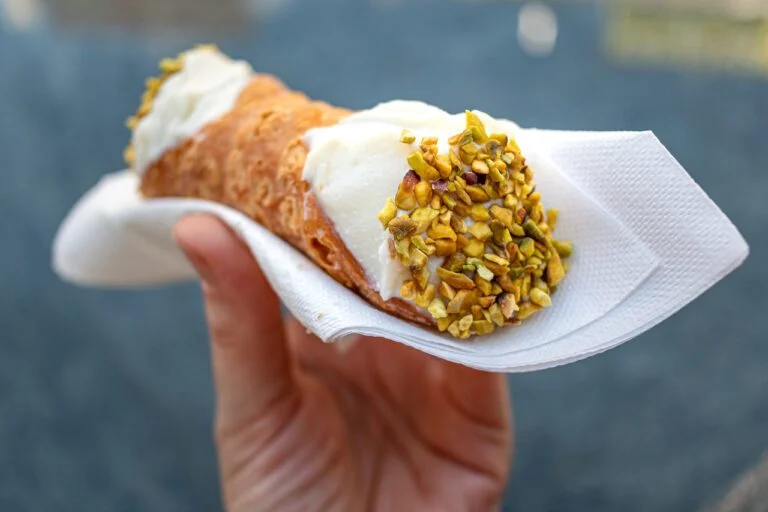 - Sicilian cannoli - the waffle, traditionally shaped around a hot metal bar, is filled with a sweet and creamy preparation made with ricotta, candied fruit, crispy pistachios or dark chocolate chips. An explosion of taste and color! You can find the recipe here.